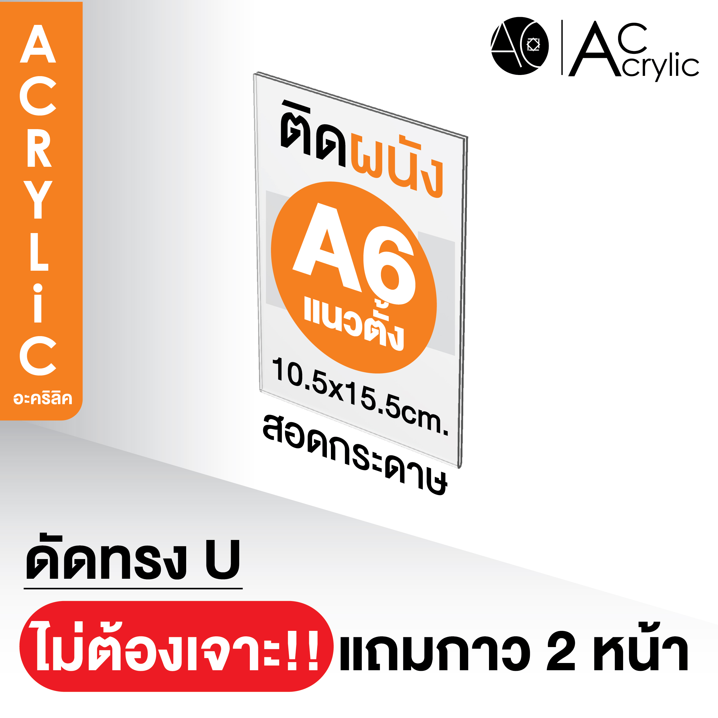 ป้ายอะคริลิค ป้ายติดผนัง กรอบรูป อะคริลิค A6 แนวตั้ง ไม่ต้องเจาะ แถมกาว 2 หน้า Acrylic wall ads